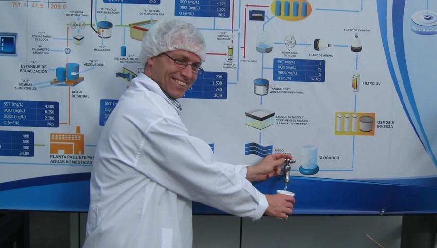 Manus Mitchell at a food facility in Bogotá, Colombia.